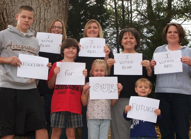 >I happen to be in one of those extended families that looks purple when you put us together in terms of the past election, so when I ran across this blogger’s project to bring such families together after the election I thought it was worth sharing.
