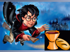 As I read about this, I was reminded of the phrase hocus pocus, a popular phrase for magicians, that some etymologists attribute to a perversion of the phrase in the Latin Mass: Hoc est corpus meum” or “This is my body.” It is a line in the Eucharistic prayer for Catholics that in some places was accompanied with the ringing of a bell, signaling the moment when the bread and cup was transformed into the Body and Blood of Christ (otherwise known as the doctrine of Real Presence or Transubstantiation). I personally have little problem with this Catholic doctrine, properly understood, but I do find it more than humorous that Protestants, and now United Methodists in particular, are engaging in the very thing generations of previous Protestants historically “protested” against – namely, a magical view of the Eucharist. No gathered community of faith is necessary in carnis (in flesh, except perhaps the official “clicker”); no celebrant is necessary in carnis (just a celebrant’s voice in digitale). This is truly Holy Communion Harry Potter style. I wonder if the clicker so chooses, can one use a mobile laptop and hold the screen in front of the refrigerator and freezer for part of the service so all future meals are equally consecrated?