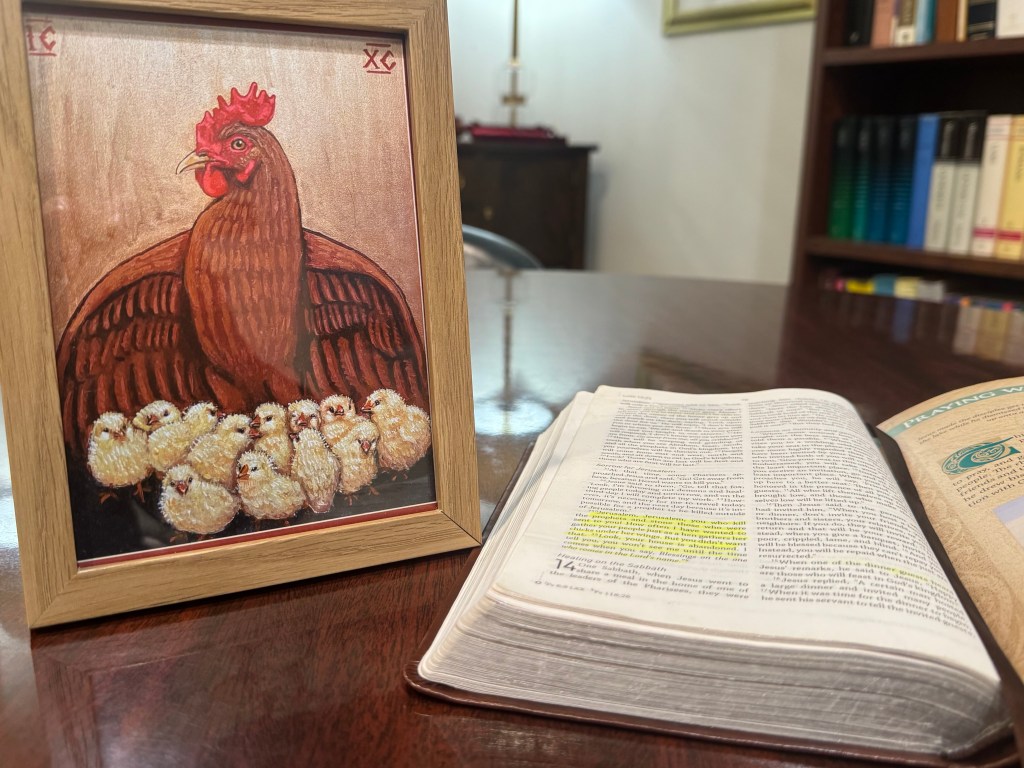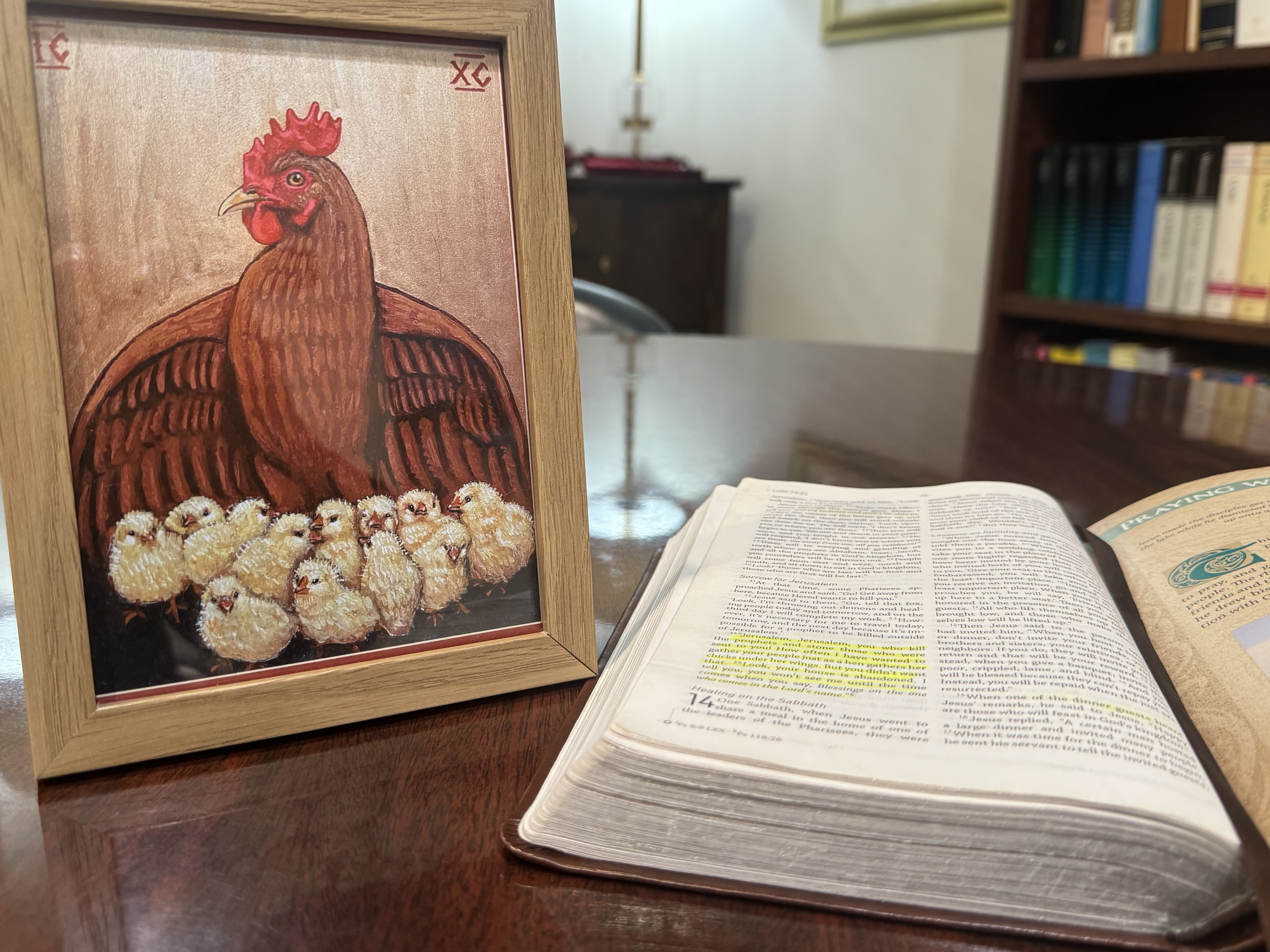Jesus gives us this maternal image of himself as a hen just after Pharisees warn him that Herod wants to kill him. In response, Jesus doesn’t talk about mounting an army or rallying troops. He talks about gathering chicks.